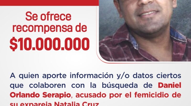 El Gobierno de la Provincia de Salta anunció oficialmente una recompensa de 10 millones de pesos para quienes aporten datos certeros que permitan localizar y detener a Daniel Orlando Serapio, acusado del femicidio de su expareja, Natalia Cruz, en un caso que conmociona a la sociedad salteña.